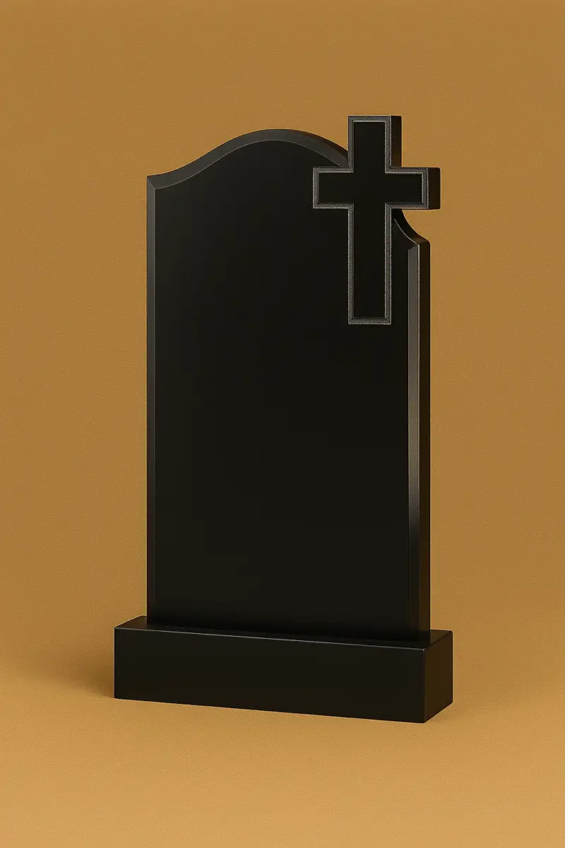 Злегка вигнута верхня частина додає м’якості геометрії, а полірована поверхня чорного граніту створює простір для портрета, імені та символічного напису. Така модель ідеально підходить для людей із глибокою духовністю або тих, хто бажає зберегти пам’ять у благородній і скромній формі.