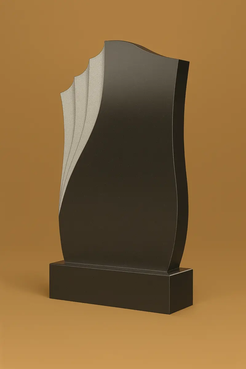 Завдяки поєднанню полірованого чорного граніту з фактурними світлими елементами, модель виглядає одночасно сучасно й художньо. Чудово підходить для індивідуального меморіалу — особливо коли важливо передати глибину, легкість і світлу пам’ять.