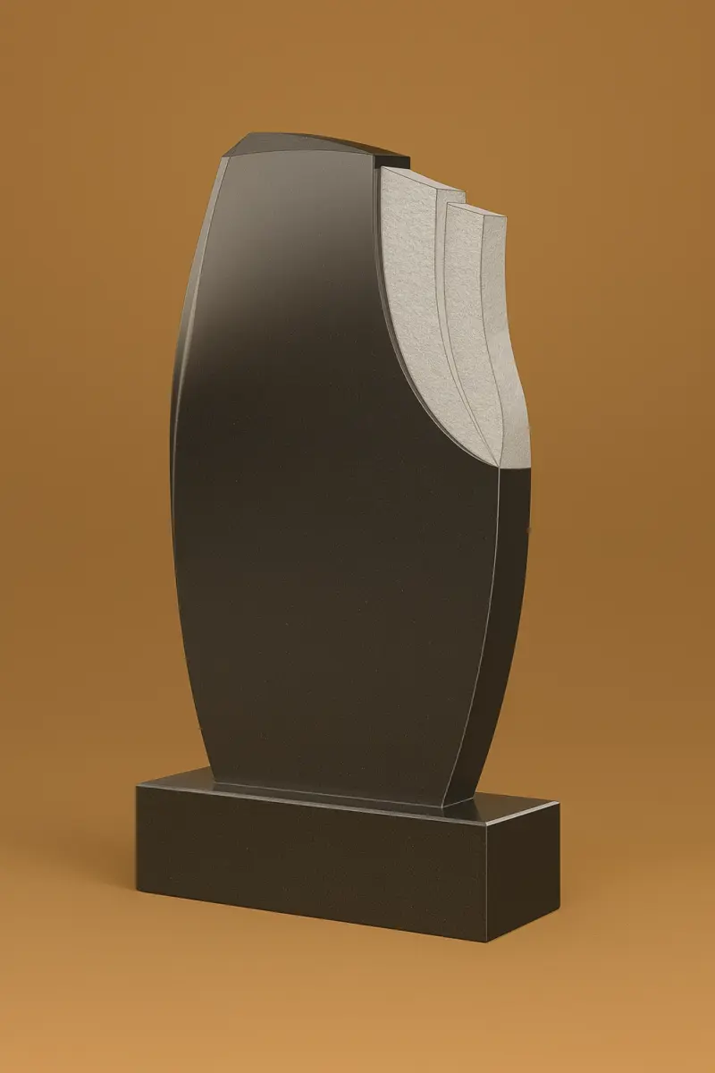 Ця модель вражає своїм динамічним контрастом — поєднанням темного полірованого граніту з матовими, світлими «хвилями» у вигляді елементів на правому краї. Вони символізують перехід душі у вищі сфери, наче легкий подих вітру, що торкається вічності.