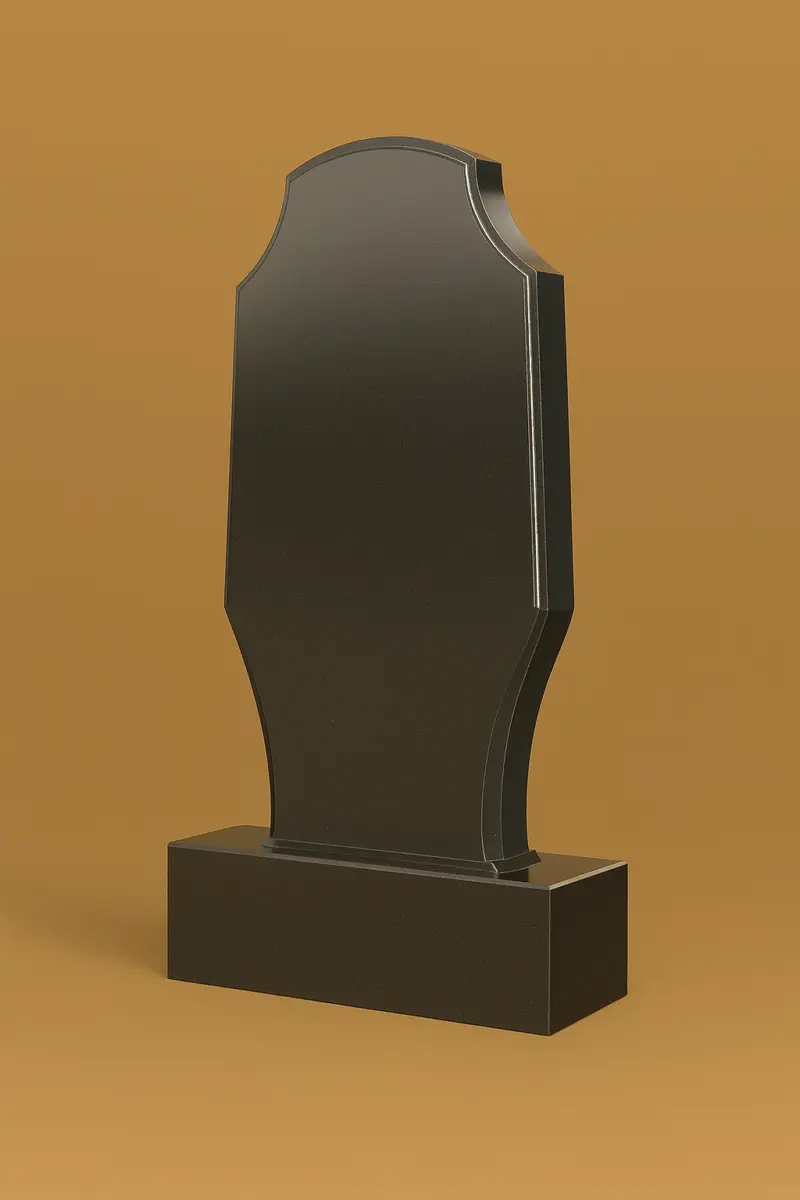Цей пам’ятник вражає класичністю та точністю форм. Витончений верх із м’яким склепінням плавно переходить у стримані вигини боковин, створюючи силует, що нагадує щит — символ захисту, сили й вічної пам’яті.