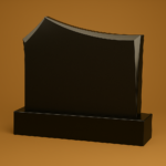 Цей пам’ятник з чорного граніту має сміливий, сучасний дизайн, у якому поєднуються чіткі лінії та асиметрична форма. Верхня частина, що нахилена вгору з лівого боку, створює враження руху, ніби душа здіймається до небес. Такий силует уособлює не кінець, а новий початок — перехід до вічного життя, до світла, де немає болю чи тривог.