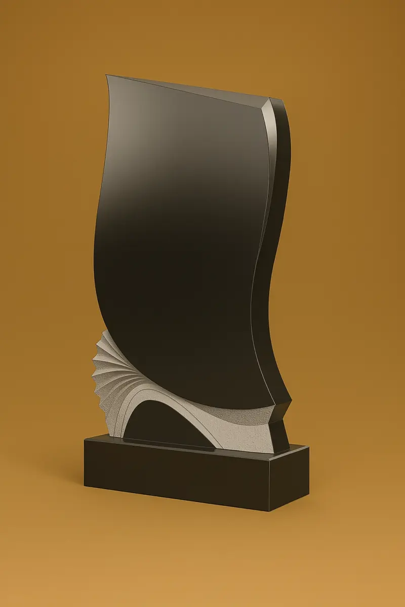 Цей ексклюзивний пам’ятник вражає своєю формою, що нагадує підняте вітрилом полотно чи розгорнуте крило — символ вічного польоту душі, свободи, переходу з матеріального у духовне. Нижня частина оздоблена декоративним рельєфом у вигляді стилізованого променя або розкритої арки, що ніби підтримує основну форму.