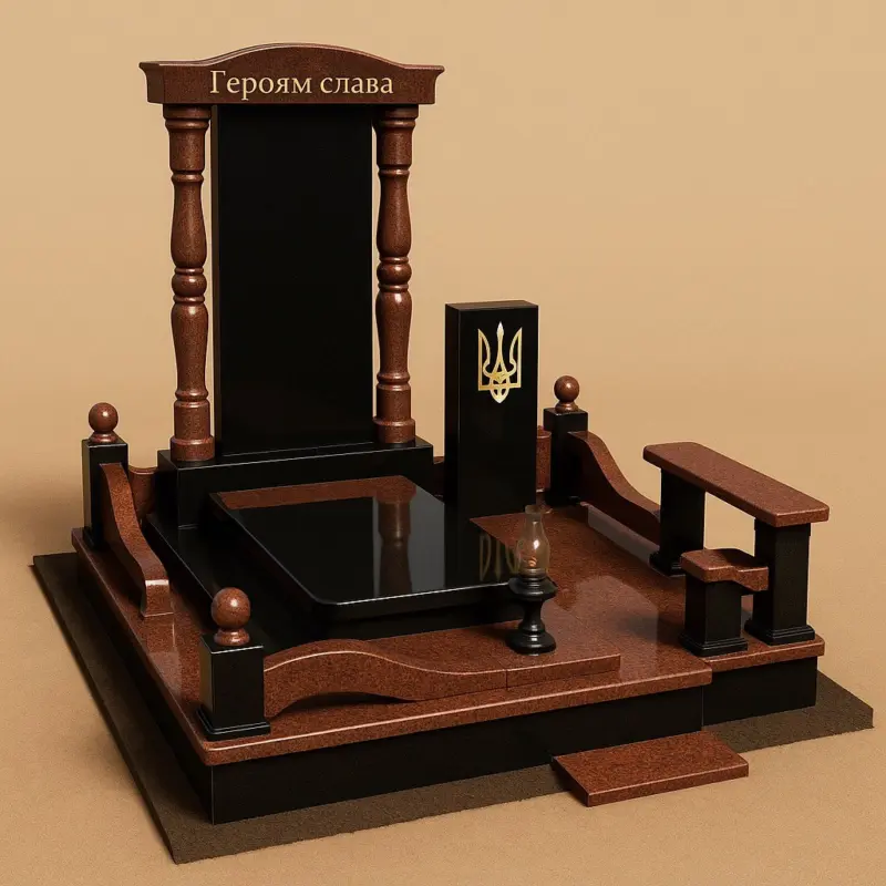 Комплекс виглядає солідно, урочисто та водночас стримано. Він ідеально підходить для вшанування пам’яті захисника України або людини, чий подвиг назавжди залишився в історії та серцях людей.