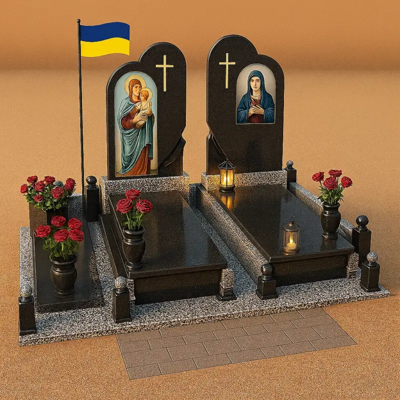 Комплекс виглядає гармонійно, зворушливо та глибоко символічно. Він ідеально підходить для сімейного поховання та стане достойним місцем молитви, спокою й світлого спомину про близьких людей.