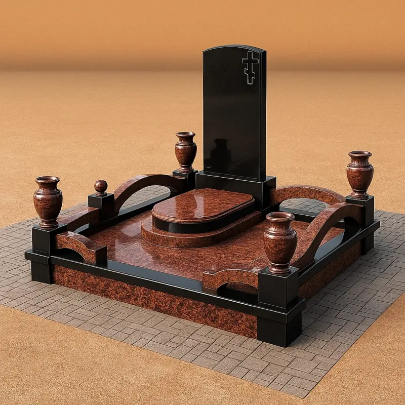 Пам’ятник «Вічний Спокій» — це приклад гармонійного поєднання сили і витонченості. Комплекс виконаний з червоного і чорного граніту, де кожна деталь створює відчуття величності та вічності.