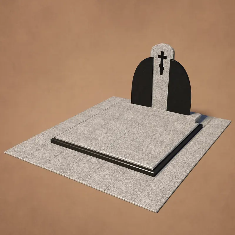 Стела в оригінальній формі, що поєднує дві частини — темну й світлу, символізує єдність життя та вічності. Вирізаний хрест — центральний елемент — нагадує про духовне піднесення, віру і надію.