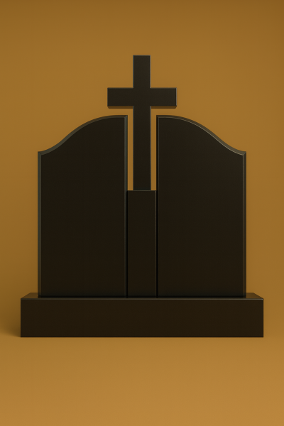 Цей подвійний пам’ятник з полірованого чорного граніту втілює стриману елегантність і глибоку символіку єдності. Дві…