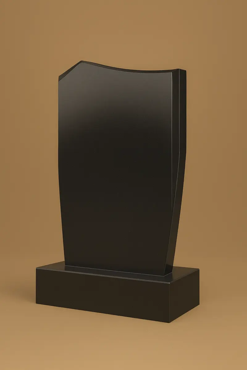 Цей елегантний пам’ятник виготовлено з високоякісного чорного граніту. Його стриманий, сучасний дизайн із плавними лініями символізує спокій, гідність і вічну пам’ять. Форма верхньої частини нагадує м’яку хвилю — знак вічного руху життя й часу.